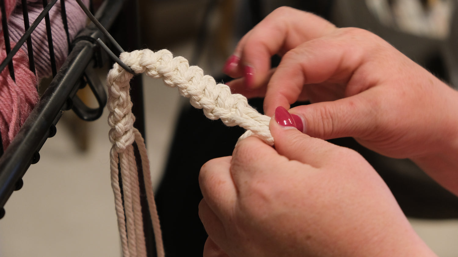 In unserer gemütlichen Lounge im NÄHXT in Regensburg finden regelmäßig Makrameekurse in kleinen Gruppen statt. Petra gibt gerne ihr umfangreiches Wissen an Dich weiter.